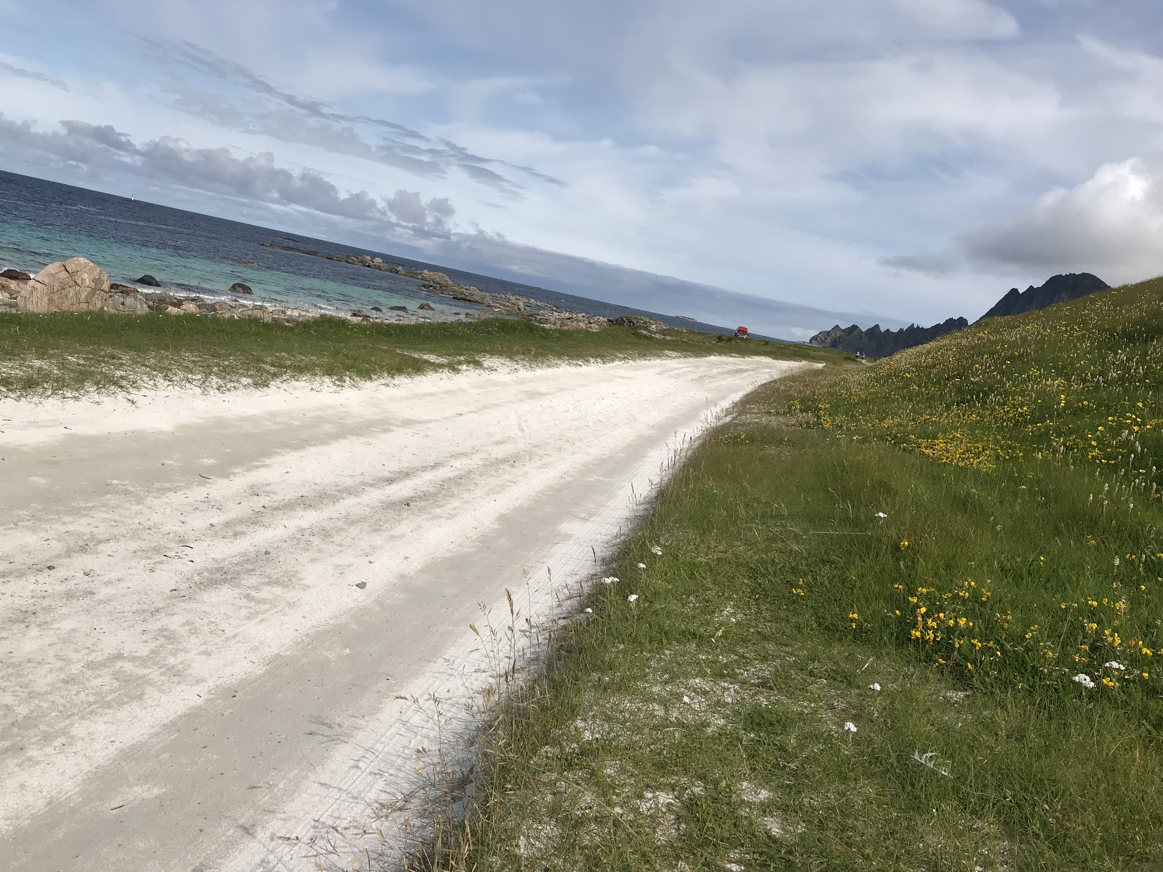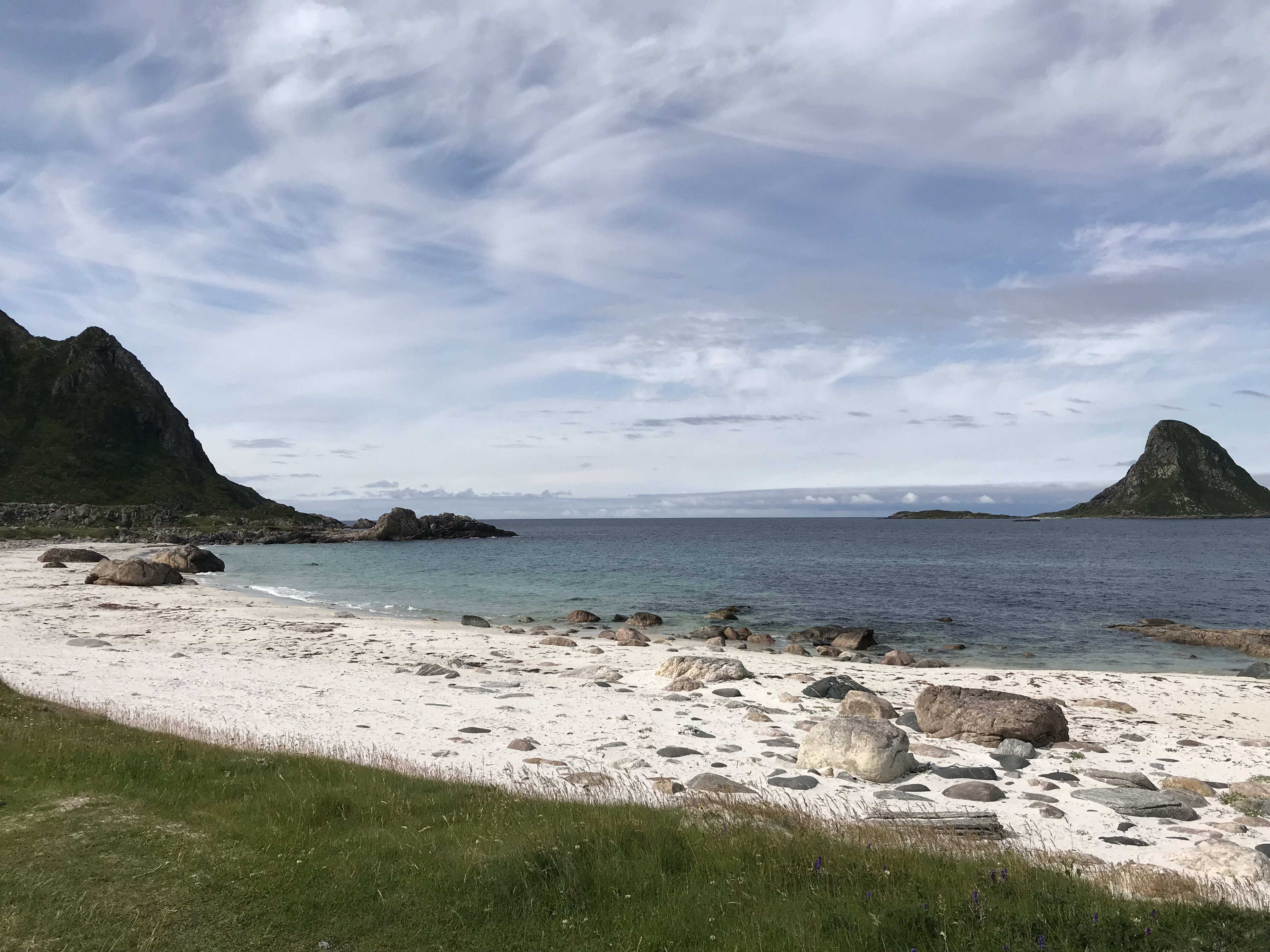 Entgegen der Wettervorhersage war das Wetter heute gut, was uns zu einer Wanderung hinziehen lies. Wir gingen kurz ein Picknick einkaufen, machten uns auf den Weg nach Bleik wo wir unsere Rundtour starteten. Zuerst ging es am Meer entlang, danach an Seen wo wir uns auch zum Essen niederliessen.