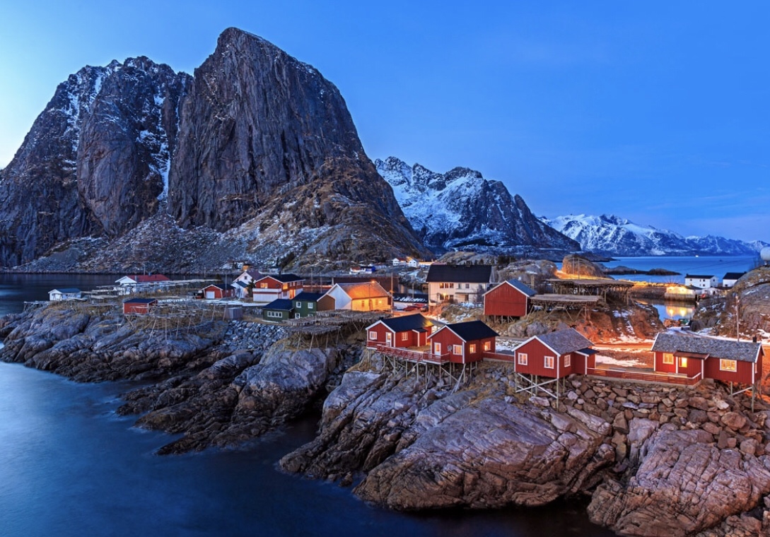 Es ist Abend und wir sind in Henningsvaer in einem guten Restaurant und geniessen eine warme Crabben Suppe und danach einen leckeren Risotto. Per Zufall sind wir hier gelandet und es ist ein ganz schöner Ort der nur über zahlreiche Brücken zu erreichen ist.